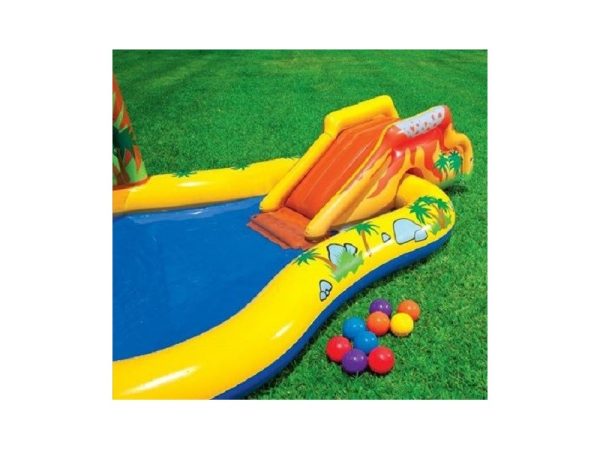 - Dinosaurus igralište nudi višesatnu zabavu na otvorenom, stvarajući sjajno okruženje za decu da istražuju i igraju se. Bazen je opremljen raznim zabavnim elementima, uključujući vodeni tobogan, palmu prskalicu, vodopad i 6 loptica. Pruza mnoštvo mogućnosti za raznoliku igru.