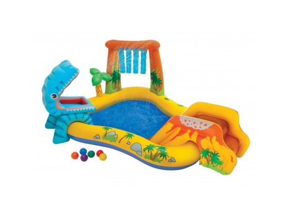 - Bazen Dinosaurus igralište dimenzija 249 cm x 191 cm x 109 cm pruža nezaboravnu zabavu mlađoj deci uzrasta od 3 do 4 godine. Ovo kreativno igralište postavlja se na ravnom i tvrdom terenu poput betona, pružajući stabilnost tokom igre.