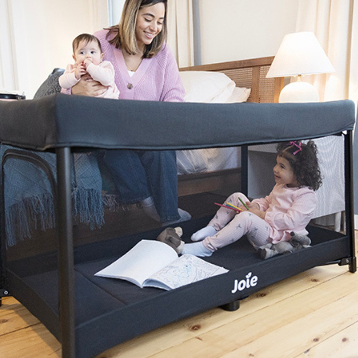 Uz Joie prenosivi krevetac Amigo vaša beba može udobno da spava ili se igra, kod kuće ili u pokretu. Zahvaljujući jednostavnom mehanizmu za sklapanje jednom rukom, pakovanje je brzo i lako. Pogodno za uzrast od rođenja do 15 kg.