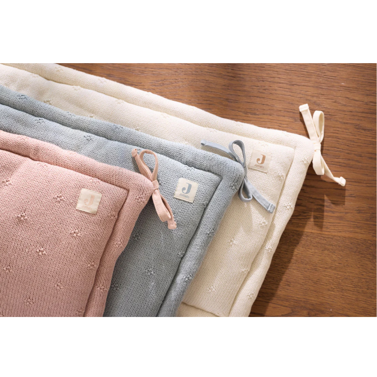Jollein pletena ogradica je mekana i udobna. Dizajnirana je tako da se odlično uklapa u bilo koji ambijent. Ogradica pripada kolekciji Cozy Knit i ukrašene je razigranim šavovima u obliku cveća.