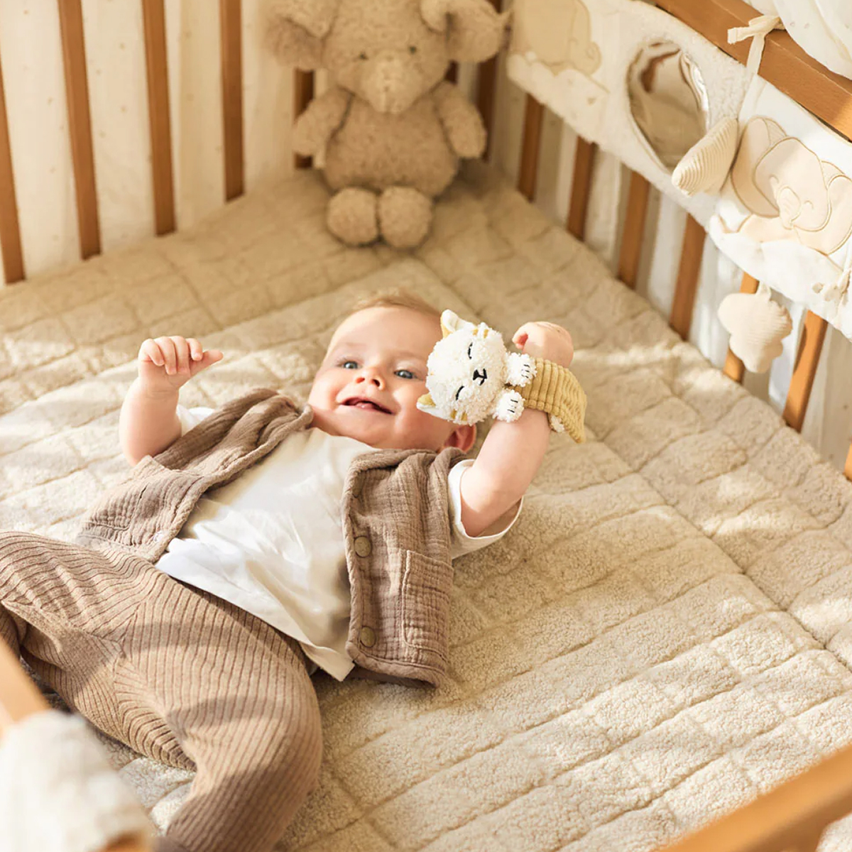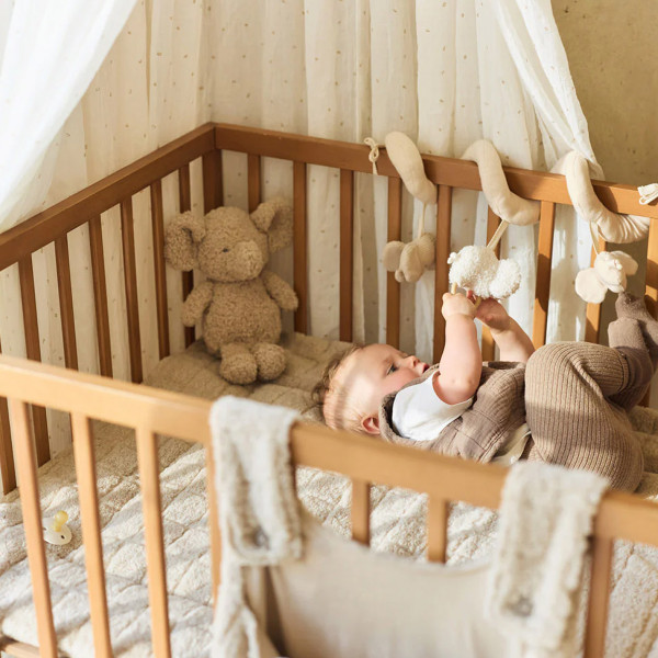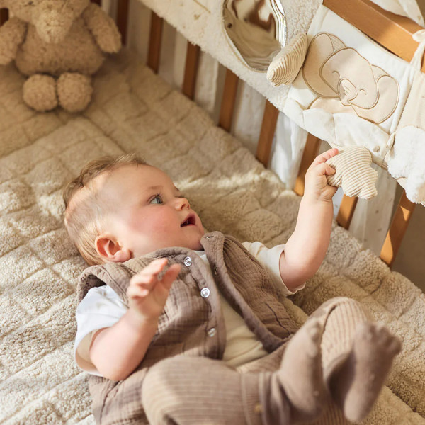 Ova izuzetno meka podloga za igru pruža vašoj bebi divno udobno mesto za igru. Gornji deo ima suptilnu teksturu sa karo šarom, dok je donji deo napravljen od nežnog teddy flisa. Savršena je za korišćenje u ogradici i dostupna u toploj boji Sand – prelepa osnova za svaki enterijer.