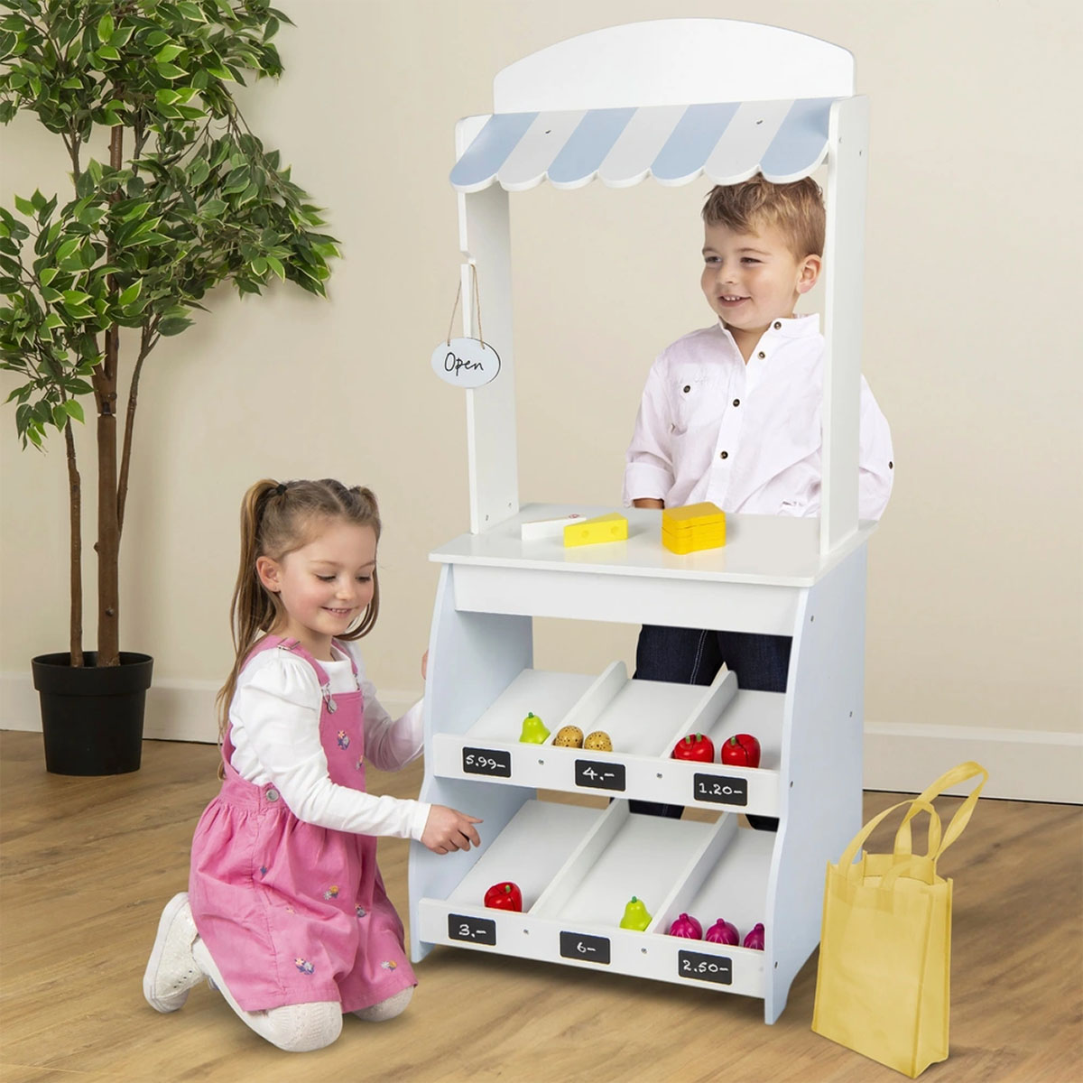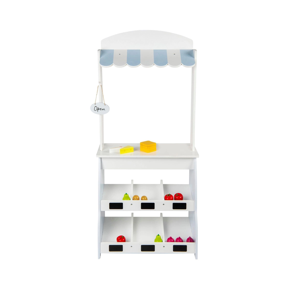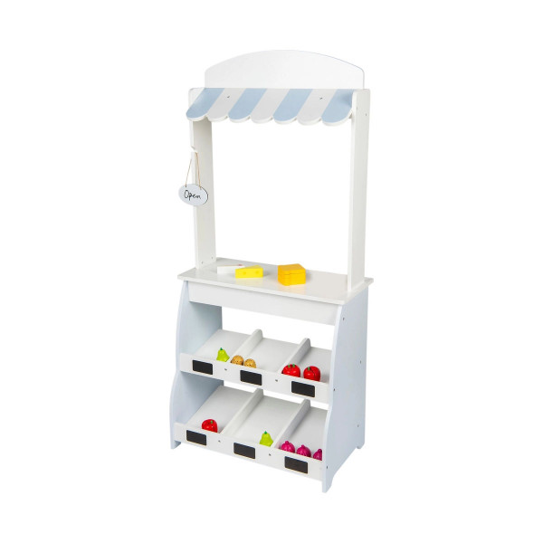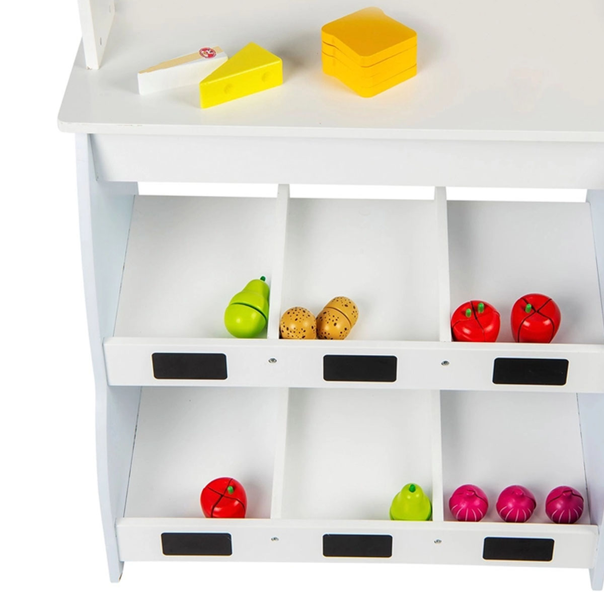 Drvena pijaca Jungle predstavlja šarmantnu i edukativnu igračku koja podstiče maštovitu igru i učenje. Napravljena od visokokvalitetnog drveta, pijaca je dizajnirana sa elegantnim detaljima, uključujući nadstrešnicu u pastelnoj boji i pregrade za voće i povrće. Dimenzije V 101,6 cm x Š 27,9 cm X D 44,5 cm