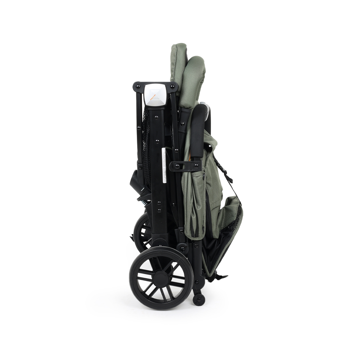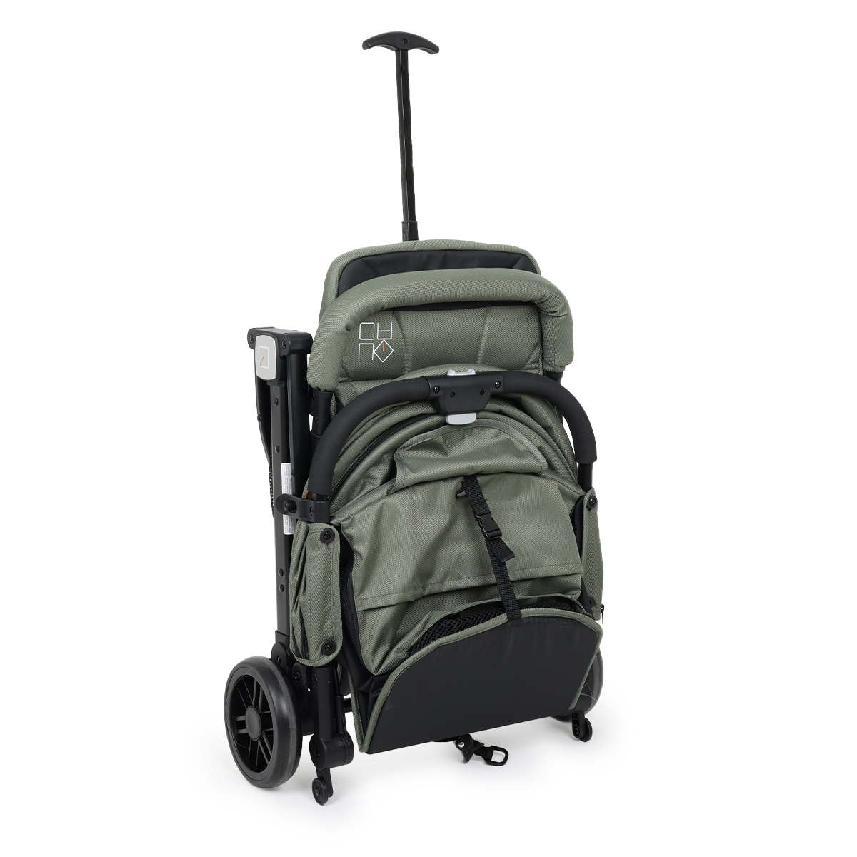 -Kolica se sklapaju u dimenzije avionskog prtljaga sa teleskopskom ručicom pomoću koje se kolica mogu vući kao kofer.