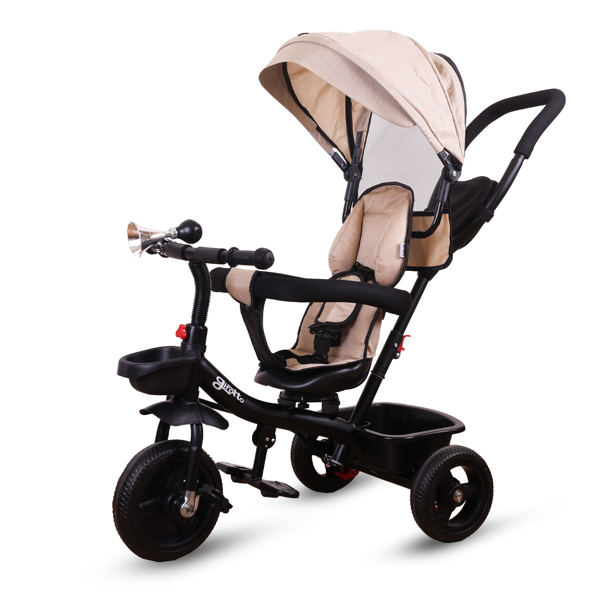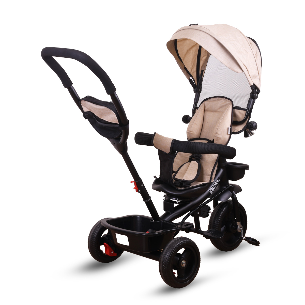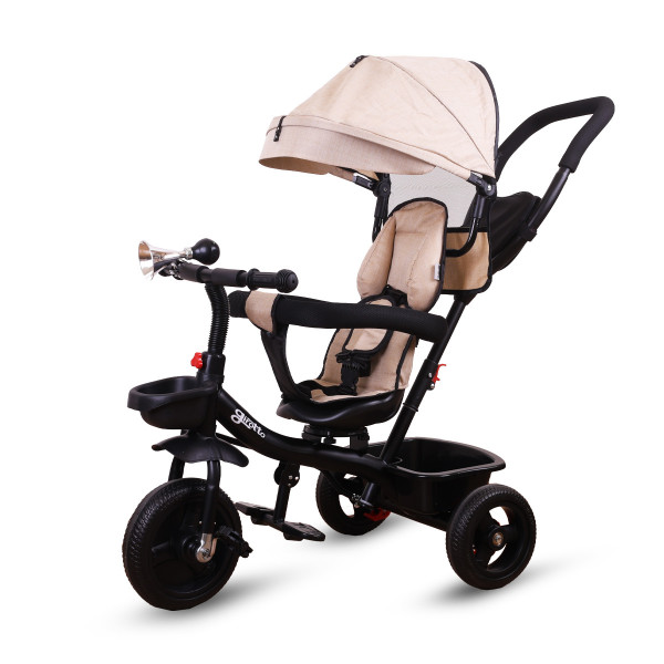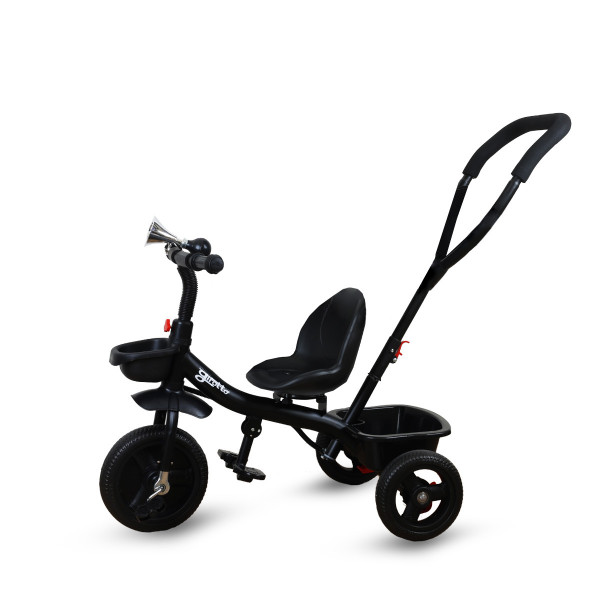 Tricikl za decu sa rotirajućim sedištem, gurajućim rukohvatom i tendom black, ECOTOYS