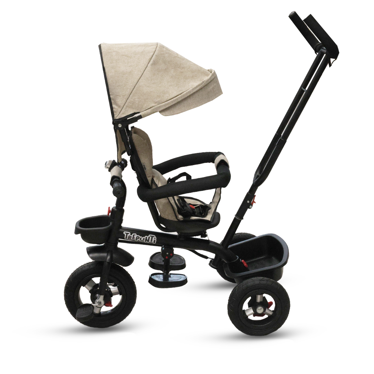 3) Od 24 meseca: skida se pomoćni oslonac za noge i dobija se tricikl sa pedalama, kojim upravlja dete ili roditelj;