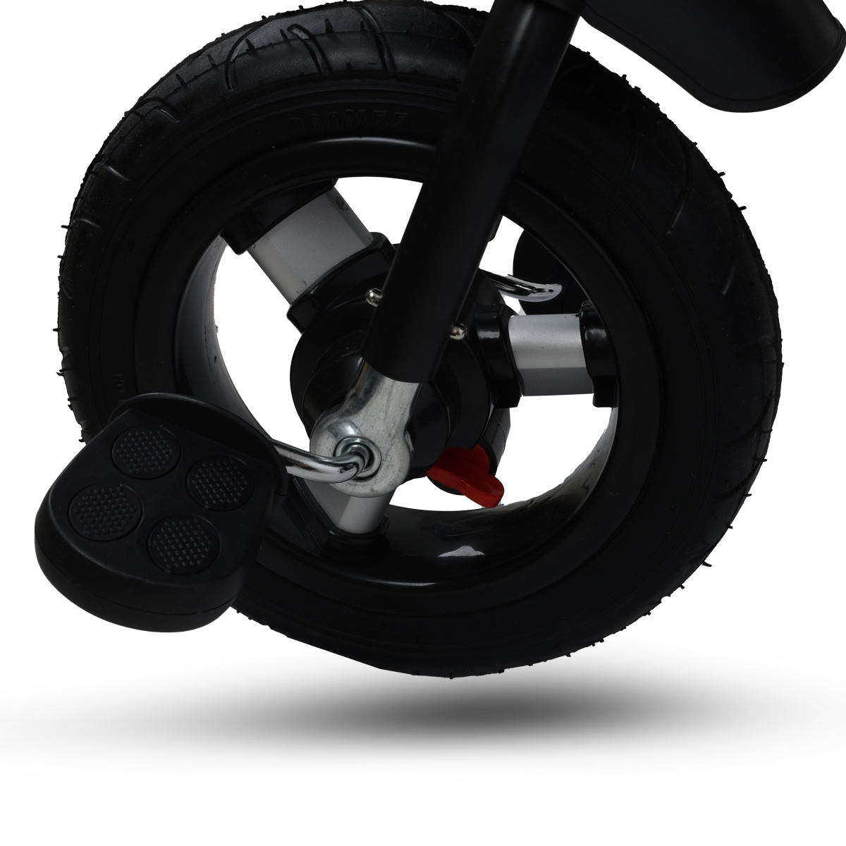3) Od 24 meseca: skida se pomoćni oslonac za noge i dobija se tricikl sa pedalama, kojim upravlja dete ili roditelj;