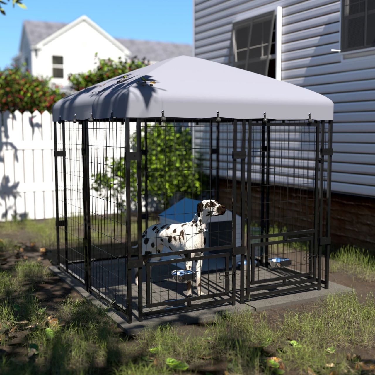 BOX za kucne ljubimce Ograda za pse izrađena je od visokokvalitetnog metala i potpuno zavarena na svim spojevima, pružajući maksimalnu čvrstoću. Ne može se lako srušiti niti oštetiti od strane velikih pasa. Idealan je za dresuru i transport dobro vaspitanih ljubimaca. Boks za pse, kavez za pse, ograda za kućne ljubimce, velika ograda za pse na otvorenom. UV-otporan krov i vodootporni pokrivač Vodootporni pokrivač i čelični okvir krova savršeno se uklapaju sa čvrstim kavezom za pse, a zatvoreni krajevi pružaju potpunu zaštitu od sunca, kiše, snega i otpada. Dodata UV zaštita sprečava cepanje, pucanje, bleđenje ili ljuštenje, omogućavajući dugogodišnju bezbrižnu upotrebu. Nagib krova omogućava oticanje vode, otpada i snega, sprečavajući njihovo zadržavanje na vrhu. Spoljni kavez za pse, zavaren boks za pse. Prostran unutrašnji prostor Dimenzije: 140 (D) × 140 (Š) × 150 (V) cm Naš kavez za pse nudi dovoljno prostora za igru, vežbanje i druge aktivnosti u bezbednom okruženju. Drži vašeg ljubimca zaštićenim od spoljašnjih opasnosti, dok prostrani prostor omogućava smeštaj većeg broja životinja. Boks za pse, kavez za pse, prostirka za kućne ljubimce, velika ograda za pse na otvorenom. Jednostavna montaža Brzo i lako postavljanje pomoću jedinstvenih elastičnih užadi koje osiguravaju čvrsto pričvršćenje krova. Izdržljiv kavez za pse, idealan za unutrašnju i spoljašnju upotrebu. Pruža zaštitu od predatora, vremenskih uslova i drugih opasnosti. Boks za pse, kavez za pse, prostirka za kućne ljubimce, ograda za pse. Tokom transporta može doći do oštećenja, poput savijanja panela usled grubog rukovanja. Ako primite proizvod sa bilo kakvim problemom, slobodno nas kontaktirajte i obećavamo da ćemo pronaći zadovoljavajuće rešenje za vas.