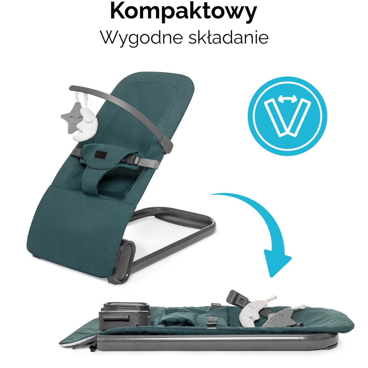 Prirodno i umirujuće ljuljanje Njihalica Vinbar pruža nežno i prirodno ljuljanje koje podseća bebu na pokrete iz perioda prenatalnog razvoja, što pomaže u smirivanju i uspavljivanju. ✨ Ergonomska i podržavajuća konstrukcija Ergonomski oblikovan sedalni deo podržava pravilnu poziciju tela, stabilizuje glavu i omogućava udobno ležanje, smanjujući rizik od nelagodnosti. Stalak sa igračkama Njihalica ima odvojivi stalak sa dve igračke koje zabavljaju bebu i podstiču senzornu stimulaciju – pałąk se lako skida radi čišćenja ili pristupa bebi. Jednostavno održavanje Presvlaka je lako skidiva i moguće je prati rukom na 30 °C , što omogućava brzo čišćenje i održavanje svežine. Kompaktan i praktičan Njihalica za bebe je lagana i potpuno sklopiva , što olakšava čuvanje i prenos – idealan za dom, vikendicu ili putovanja. Bezbedno držanje deteta Tri-tačkovni sigurnosni pojas (dva pojasa oko bokova + jedan između nogu) garantuje stabilnost i sigurnost deteta u bujaczku. Specifikacija proizvoda Preporučeno za uzrast: od rođenja do trenutka kada beba samostalno počne da sedi (do ~9 kg) ⚖️ Maksimalna težina deteta: 9 kg Materijal: Skinljiva, brzo sušeća tkanina Pojasevi: 3-tačkovni sigurnosni pojas ⚖️ Težina njihalice: ~2,5 kg Standard bezbednosti: EN 12790:2009, EN 71-1:2014+A1:2018, EN 71-2:2020, EN 71-3:2019+A1:2021 Zašto odabrati ovu njihalicu za bebe? ✔️ Prirodno i umirujuće ljuljanje koje beba voli ✔️ Ergonomska podrška za pravilnu poziciju tela ✔️ Sigurnosni pojas za stabilnost i bezbednost ✔️ Stalak sa zabavnim igračkama ✔️ Lagan, kompaktan i sklopiv za jednostavno čuvanje i prenos ✔️ Lako održavanje sa skinjivom presvlakom koju je lako oprati