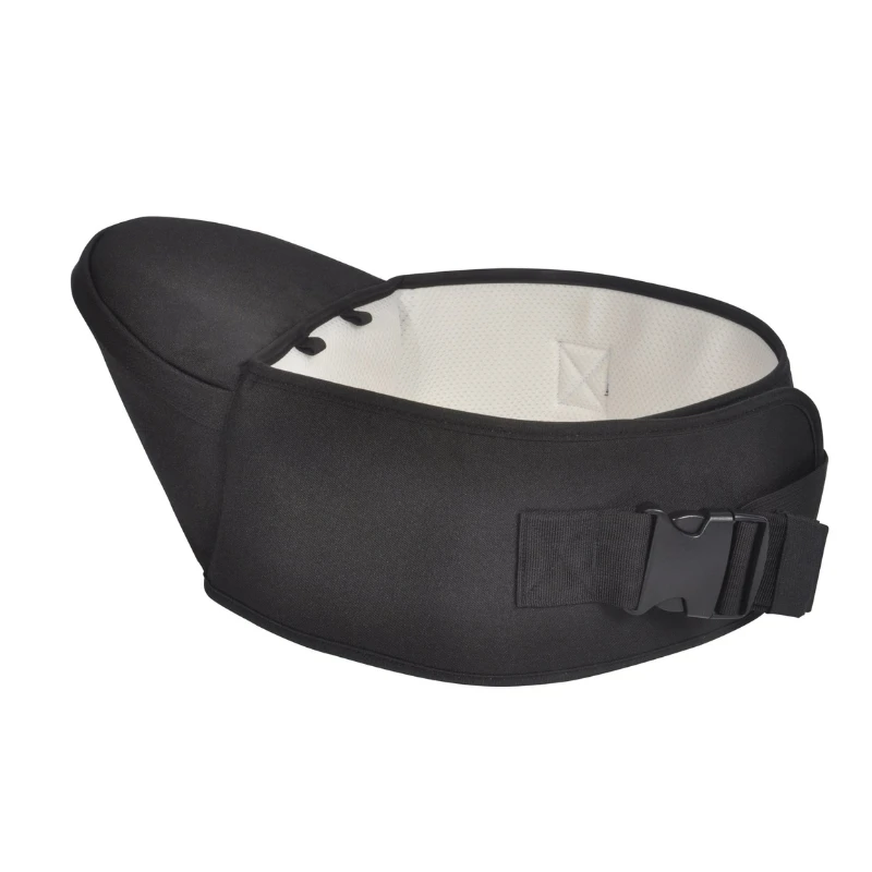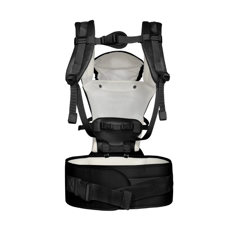 - Široki pojas i sedište pomažu u ravnomernoj raspodeli težine bebe na struk i gornji deo ledja,