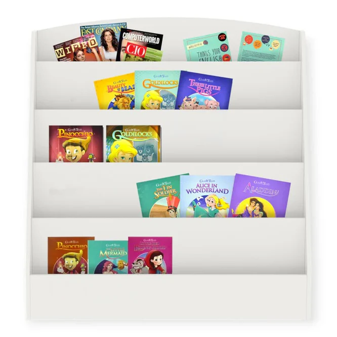 Postoji pet praktičnih polica za odlaganje knjiga za čitanje, slika za bojenje, kao i časopisa svih oblika i veličina sa praktičnom dečjom policom.