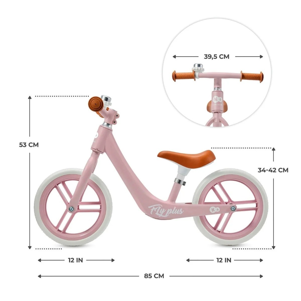 Glavne prednosti: – Za 2 godine – Lagani, jednodelni okvir od legure magnezijuma – Točkovi od pene otporne na probijanje – Podesivo sedište – Zvono uključeno FLY PLUS je bicikl prefinjen u svakom detalju, koji se odlikuje retro dizajnom i lakim točkovima od pene otporne na probijanje. Ergonomsko sedlo sa mekim punjenjem učiniće i najluđu vožnju preko neravnina udobnom za vaše dete! Sedište ima širok spektar podešavanja (34-42 cm) – njegovu visinu možete prilagoditi i malom trogodišnjaku i visokom starijem detetu. FLY PLUS tricikl ima ograničeno okretanje volana, što će zaštititi Vašeg mališana od nekontrolisanog okretanja i pada tokom igre. Volan je opremljen neklizajućim gumenim ručkama koje obezbeđuju stabilno prianjanje. Na volanu se nalazi zvonce koje će vašem detetu učiniti svako putovanje prijatnijim. FLY PLUS bicikl guralica pomaže vašem detetu da razvije osećaj za ravnotežu i veštine manevrisanja. Jednodelni okvir je napravljen od magnezijuma – zahvaljujući njemu, bicikl je čvrst i lagan, težak samo 2,8 kg. Dimenzije: Dužina: 85 cm, Visina: 53 cm Širina: 39,5 cm Podešavanje sedišta: 34-42 cm Maksimalno opterecenje: 35kg.