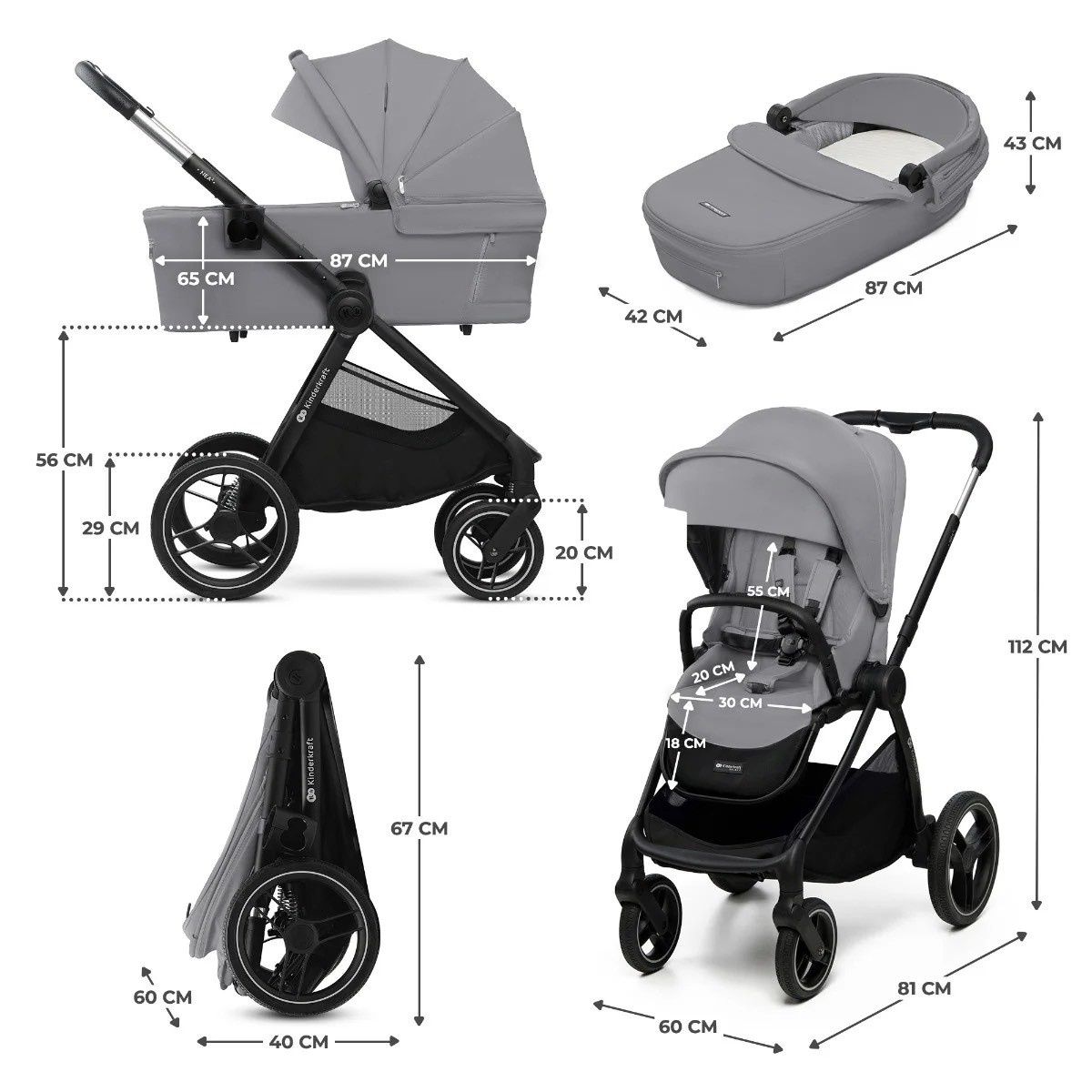 KINDERKRAFT KOLICA ZA BEBE 2U1 NEA 2 PLATINUM GREY