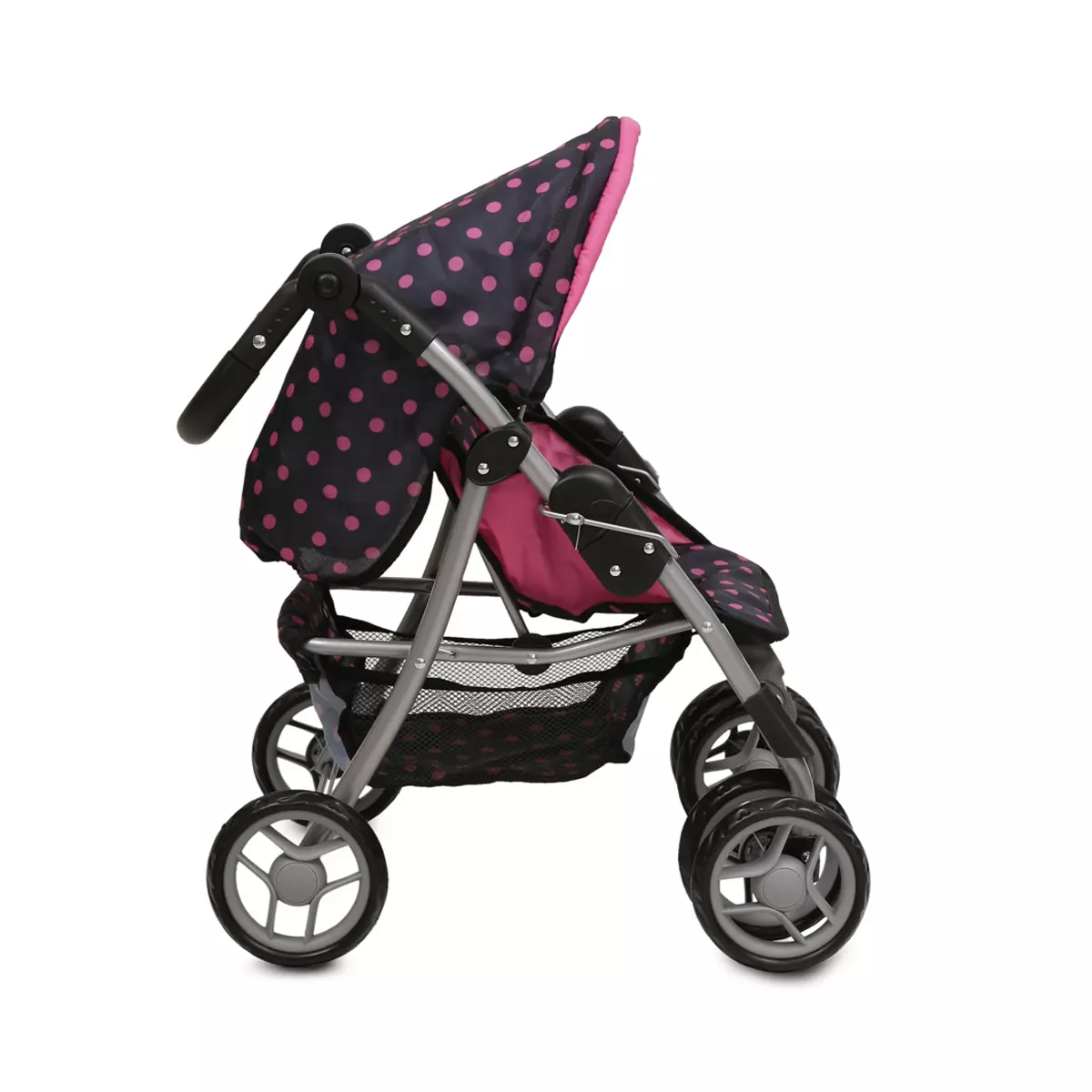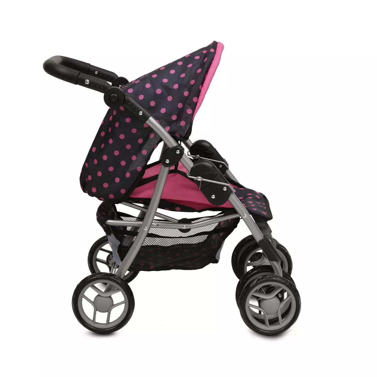 Kolica za lutke su nezaobilazna igračka za devojčice i omogućavaju devojčicama da budu male mame. Uz Pinky Dots kolica za lutke brenda Moni toys devojčice će imati beskrajnu zabavu. Naslon ima nekoliko položaja a ručka i nadstrešnica mogu se podesiti.