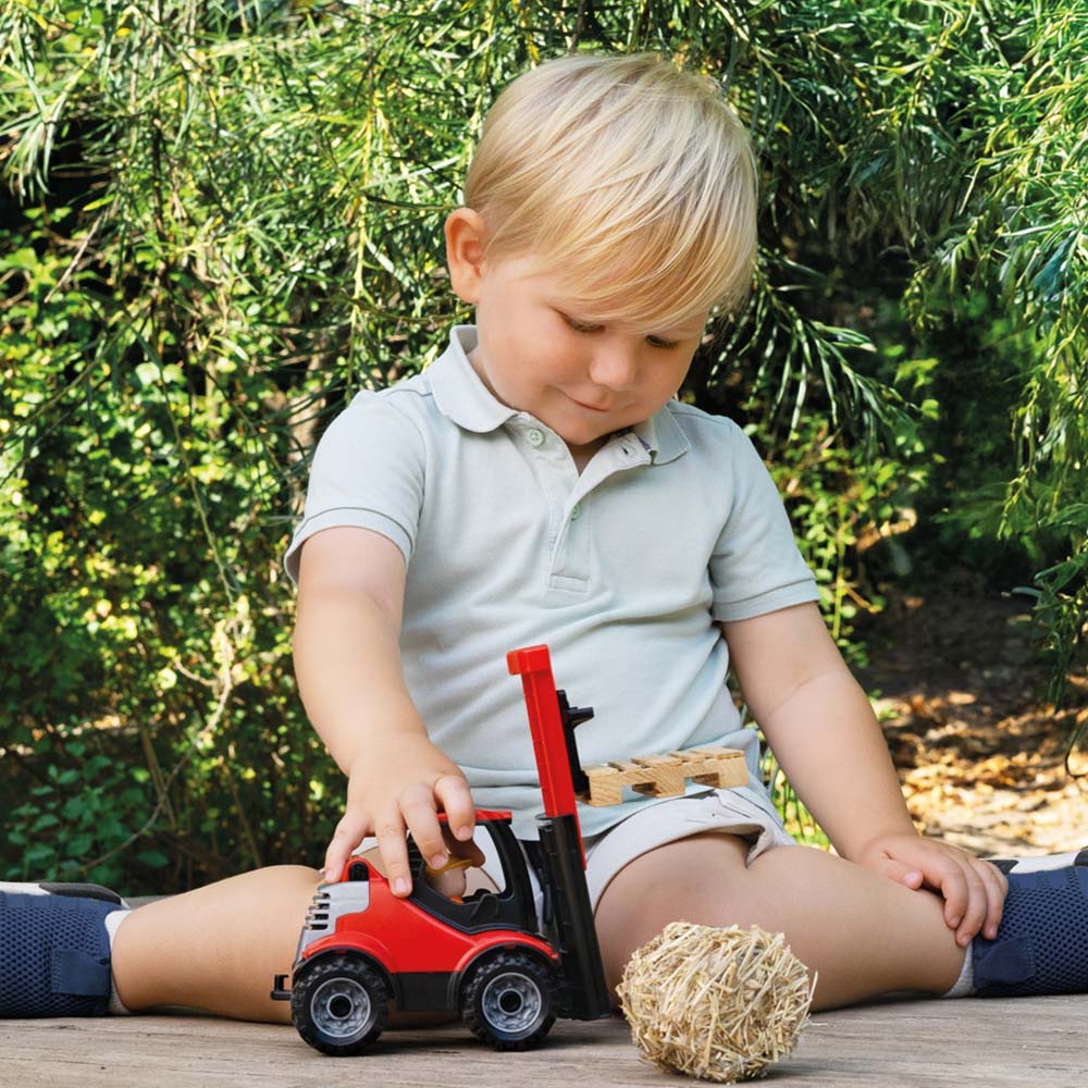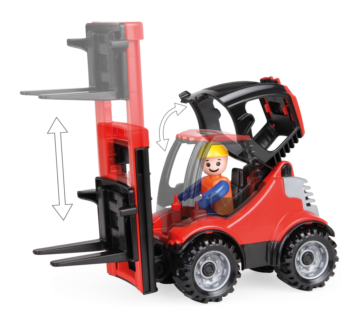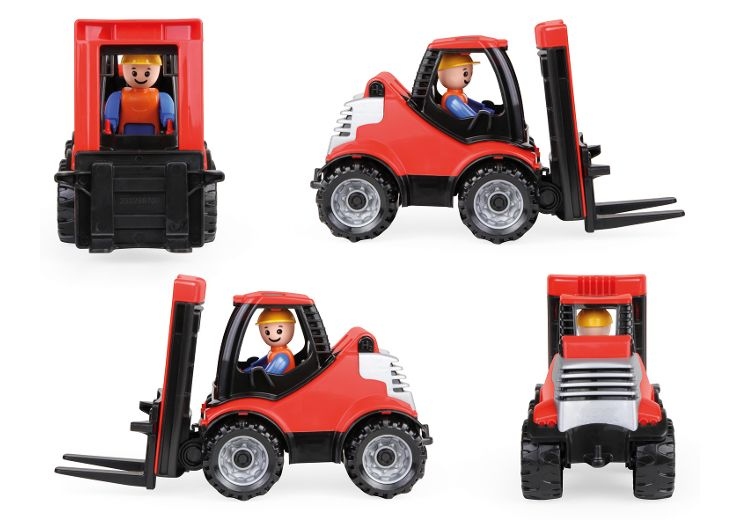 Lena Truckies viljuškar koji u setu sadrži paletu za transport i figuru. Kabina viljuškara se može otvarati, dok se jedinica za dizanje može podesiti u pravcu gore-dole. Pogodno za upotrebu u zatvorenom i na otvorenom. Namenjeno decu uzrasta 2+ godine.