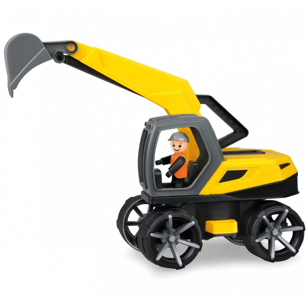 LENA TRUXX rovokopač sa osovinama od pocinkovanog čelika od 4 mm, kabinom vozača,pokretnom rukom bagera, šasijom koja se može zaključati, kukom za prikolicu i LENA® figurom