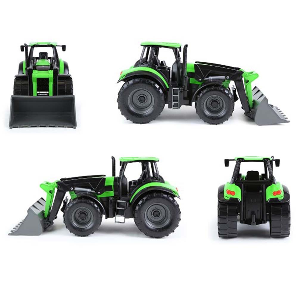 Lena Worxx Deutz-Fahr traktor sa prikolicom od 74 cm! Kašika i prikolica traktora su podesive i mogu se zaključati. Procinkovanom osovinom debljine 5 mm i poseban klip između traktora i prikolice mogućava da se prikolica podesi u odgovarajući položaj. Pogodno za upotrebu u zatvorenom i na otvorenom. Za decu uzrasta od 3 godine i više.