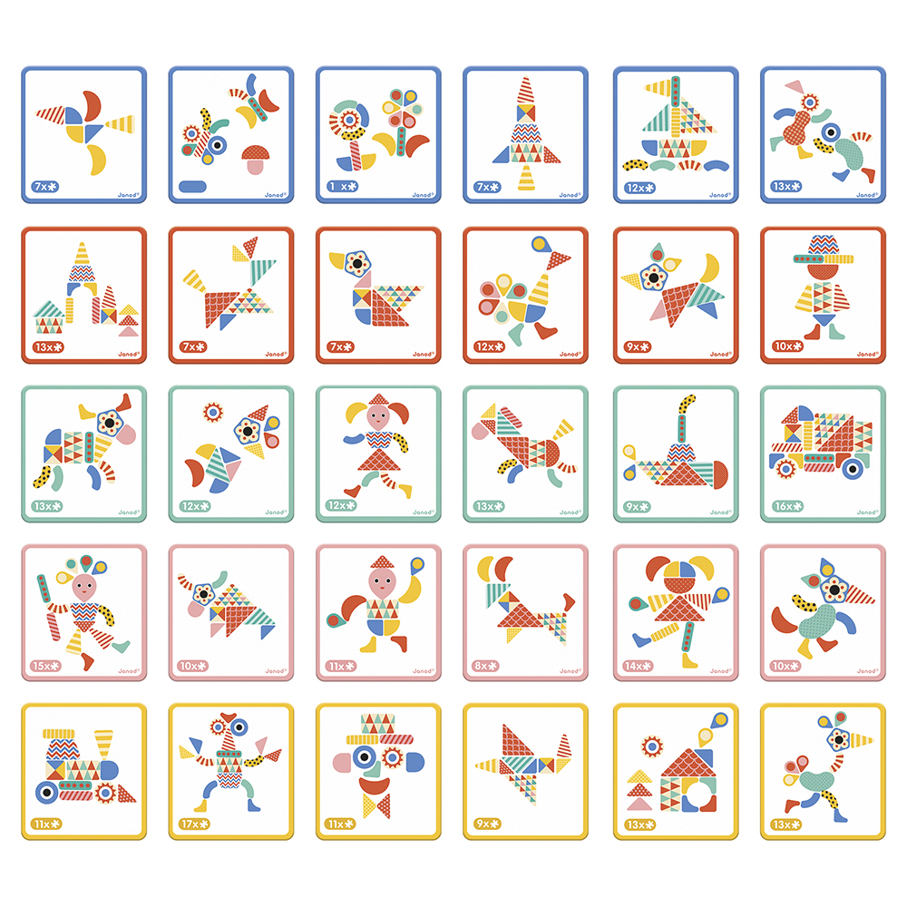 Magnetna edukativna igra u kartonu na temu tangrama. Sastoji se od 43 magneta i 30 kartica. Kada se knjiga otvori, cilj je da se na bini napravi isti oblik tangrama kao što je naznačeno na kartici zahvaljujući magnetima. Ovaj proizvod je napravljen od FSC® sertifikovanog i drugog kontrolisanog materijala.