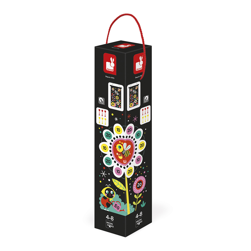 Izazovite svoje protivnike i osvojite najviše poena preciznim nišanjenjem! Meta se lako fiksira za zid pomoću kabla, a 6 strelica su magnetizovane radi veće bezbednosti. Više od zabave, ova igra veštine je savršena za razvoj spretnosti i koncentracije vašeg deteta. Magnetna igra sa pikadom na temu bašte. Dolazi sa 6 plastičnih pikada (3 crvene i 3 žute) i pamučnim kanapom za kačenje. Umotano u kutiju radi lakšeg skladištenja.