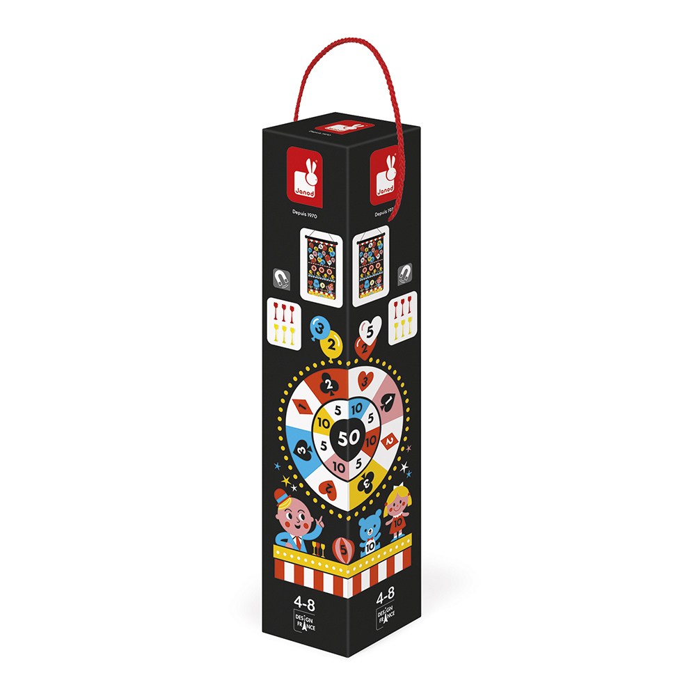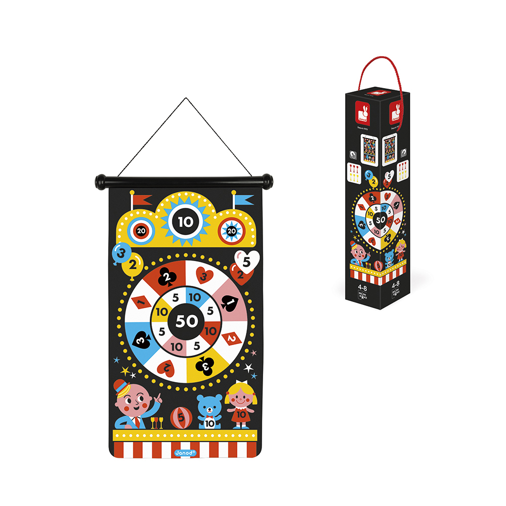 Ovi bezbedni magnetni pikado su odlični za decu uzrasta od 4 godine i više! Ovi pikadi nemaju oštre vrhove – njihovi magneti ih lepe za tablu kao magijom! Čitava porodica može da prihvati izazov – to je kao da donosite luna-park kući! Da biste pobedili, biće vam potrebna spretnost, koncentracija i dobro nišanjenje da biste nadmašili protivnike! Meta se lako može pričvrstiti za zid pomoću priloženog kabla, što znači da je možete lako pomerati bilo gde, unutra ili napolje. Štaviše, meta je dvostrana, tako da možete vežbati na 2 različite table! Ova igra nije samo zabavna – ona takođe pomaže u razvoju spretnosti i koncentracije vašeg deteta. Set sadrži 6 magnetnih pikada (3 crvene i 3 žute).