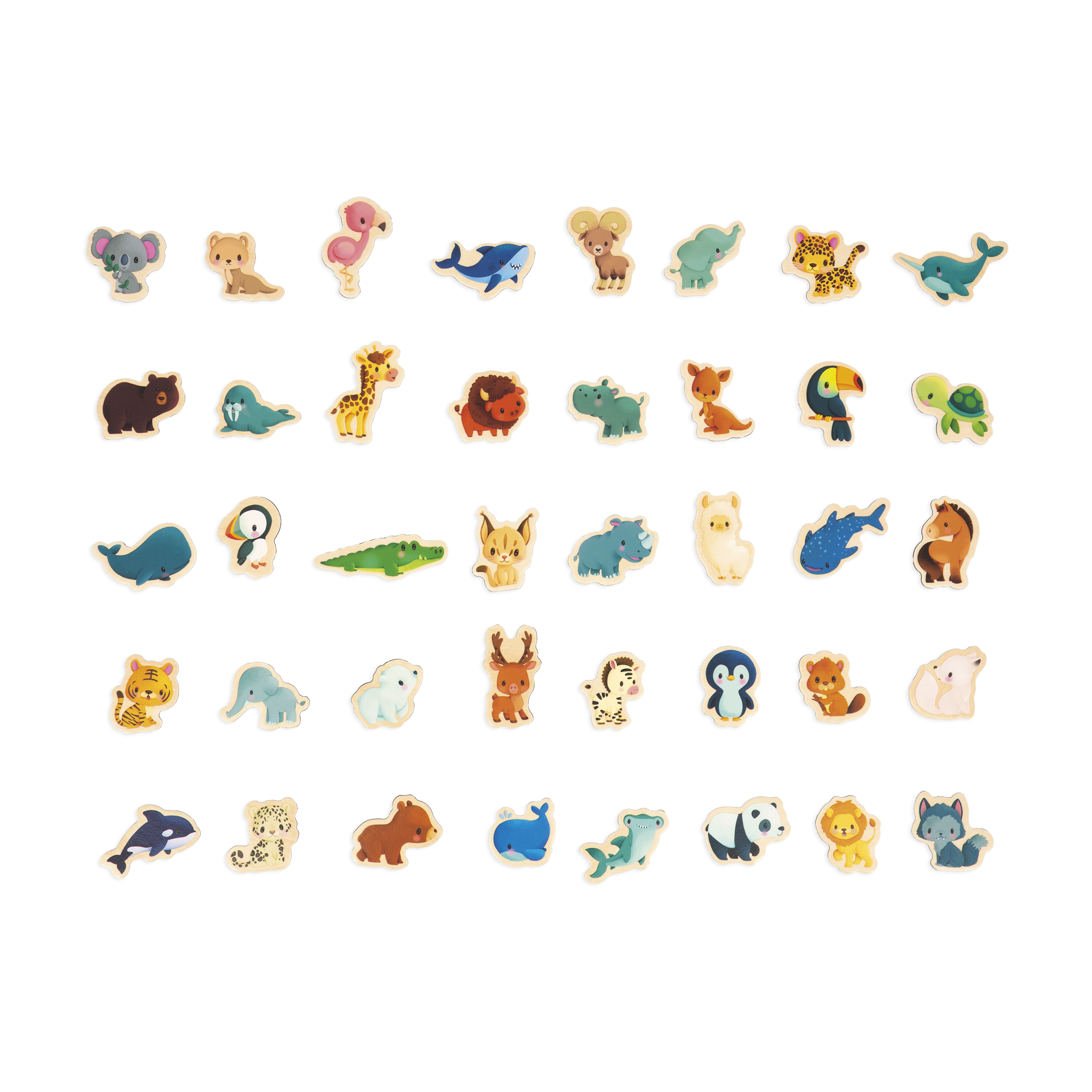 Saznajte više o životinjama i gde žive uz ovu slatku magnetnu mapu sveta! Pogodno za mališane uzrasta od 2 godine i više: ova velika planisfera nežnih nijansi fasciniraće radoznale mališane i ljubitelje životinja. 40 mladunaca životinja treba postaviti u pravo okruženje! Da bi pomogao deci u ovom poduhvatu, veliki dvostrani edukativni poster pruža mnoštvo informacija koje će im pomoći da identifikuju, imenuju i saznaju više o ovim životinjama. Veličina ovih magneta u obliku životinja je savršena za male ruke. Ova lepa slika Zemlje može se postaviti na sto ili okačiti na kanap. Ovaj set magneta može se koristiti i u mnoge druge svrhe, npr. da podstakne maštu mališana dok smišljaju priče i oživljavaju naše drage prijatelje na tabli. Ova igračka za rano učenje je napravljena od FSC® drveta.
