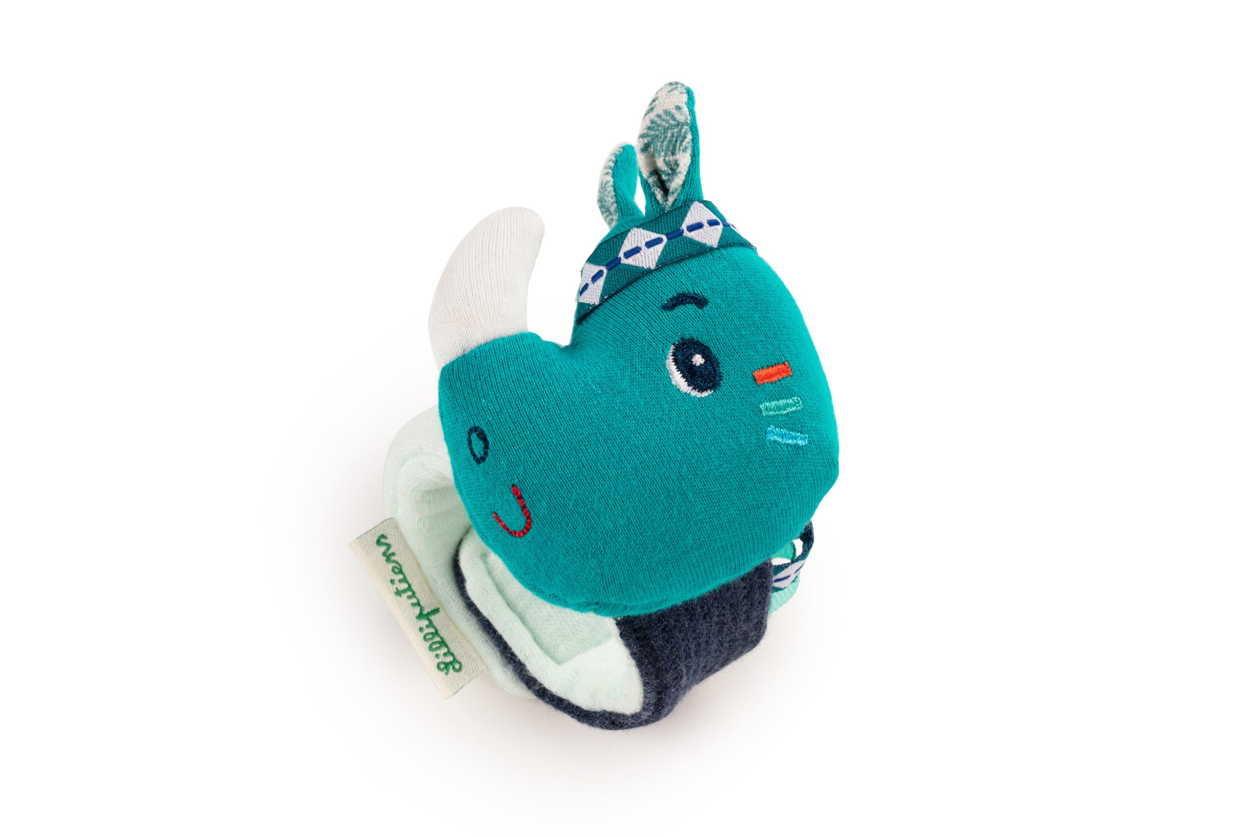 Ova neodoljiva zvečka od organskog pamuka lako se pričvršćuje na zglob ili skočni zglob vašeg mališana. Savršena je za mališane koji još nisu savladali veštine hvatanja. Škripi i zvecka sa svakim pokretom, na veliko oduševljenje vašeg mališana.
