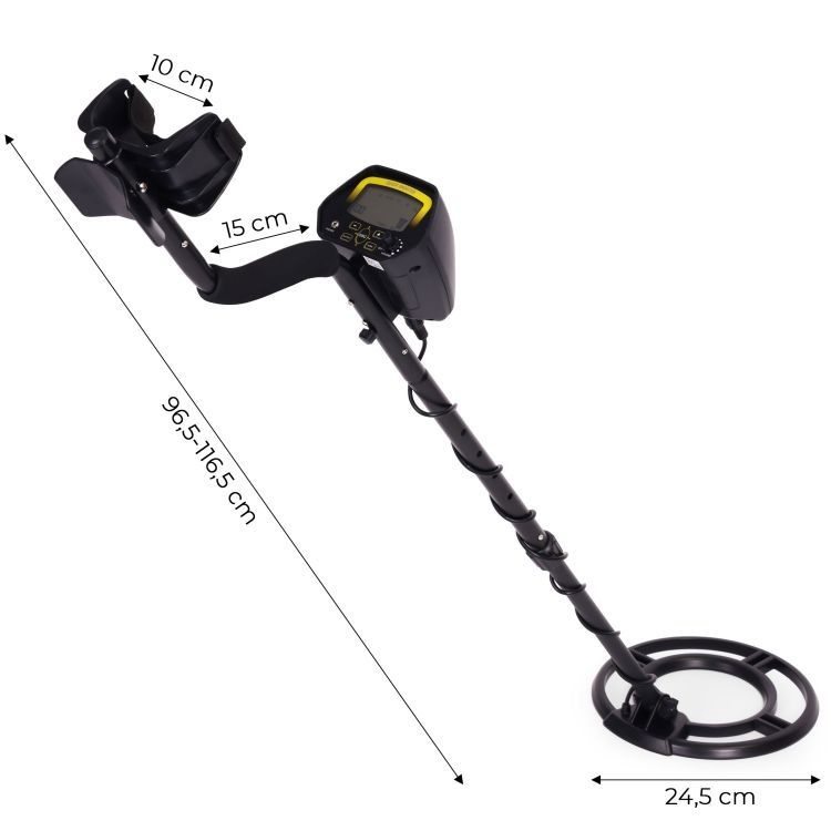 GC-1032 METAL DETEKTOR Metal detektor je namenjen za pretragu različitih terena – pogodan je za plaže, šume, polja i područja u blizini starih objekata. Poseduje jasan LCD ekran sa numeričkom identifikacijom (0–99), tri režima rada (ALL METAL, DISC, NOTCH) i prepoznatljive zvučne tonove za različite vrste metala. Podešavanje osetljivosti i jačine zvuka omogućava prilagođavanje uređaja uslovima okruženja. Vodootporna sonda za pretragu prečnika 24,5 cm omogućava detekciju na vlažnom tlu, dok podesiva drška, neklizajuća ručka i udoban naslon za ruku povećavaju komfor prilikom korišćenja. Mogućnost povezivanja slušalica (3,5 mm priključak) i indikator nivoa baterije dodatno unapređuju funkcionalnost. Napajanje: 2 × 9 V baterije (nisu uključene). PAKOVANJE Proizvod je upakovan u posebno ojačanu transportnu kutiju, a svi delovi su adekvatno obezbeđeni kako bi se sprečilo oštećenje tokom transporta. Dimenzije pakovanja: 43 × 28 × 16 cm Težina: 2 kg