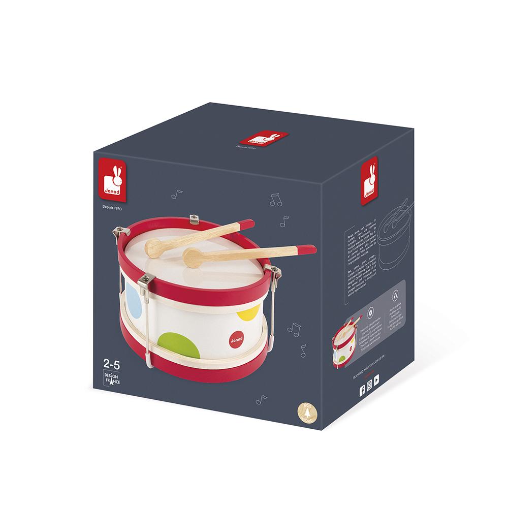 Neka se ritam nastavi uz ovaj prelepi drveni bubanj! Deca uzrasta od 2 godine i više moći će da eksperimentišu sa zvucima i uče o muzici, dok će istovremeno graditi samopouzdanje. Ovaj bubanj je deo našeg Confetti asortimana: linija igračaka koje imitiraju muzičke instrumente sa motivima Pop N’ Rock! Uključena su dva batka. Kako će se vaša mala rok zvezda osećati ponosno dok svira svoj instrument.