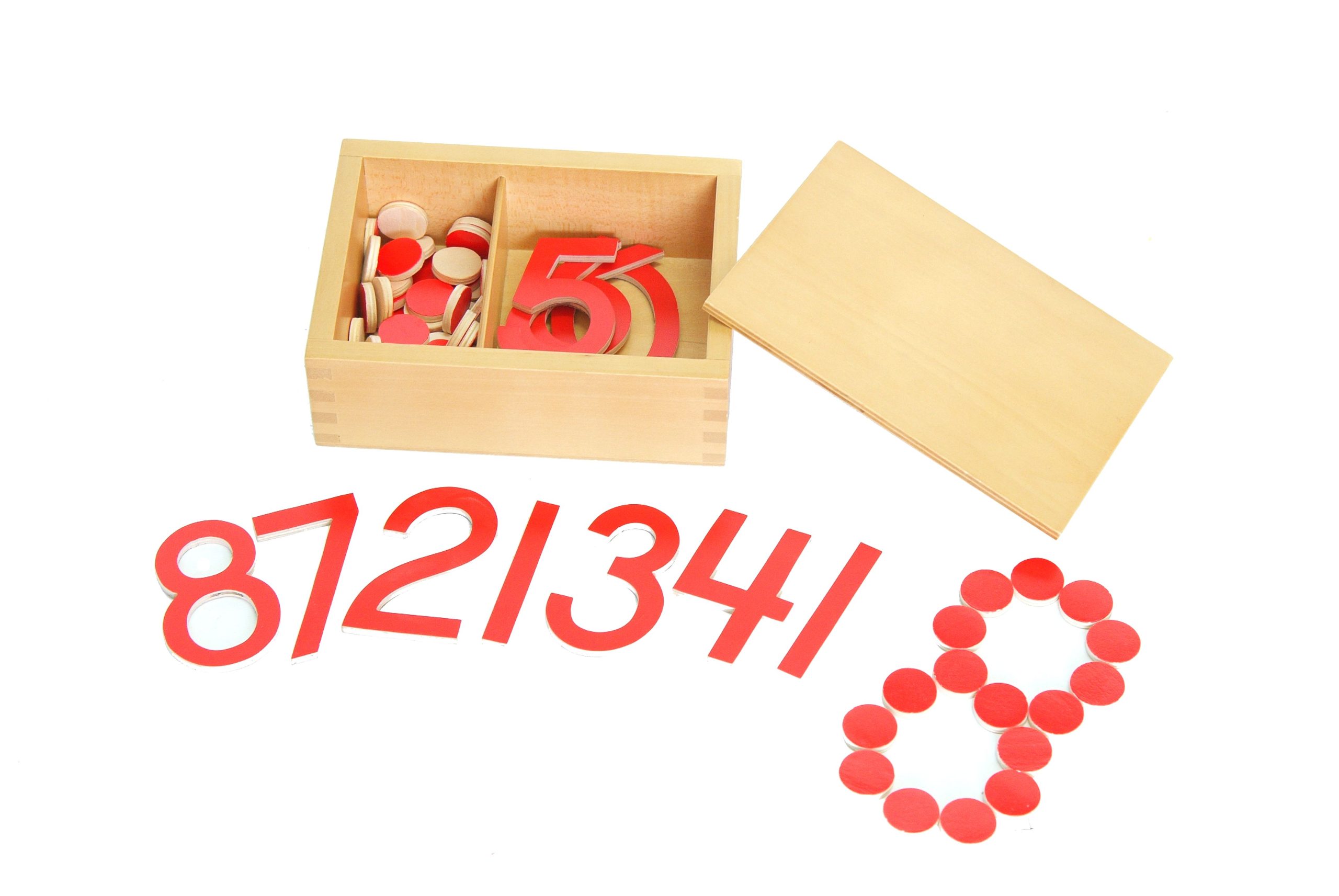 Set sadrži drvene brojeve i žetone, u drvenoj kutiji sa dve pregrade. Cilj rada sa ovim proizvodom je spajanje pojma količine i simbola brojeva od 1-10, priprema za uvođenje pojma parnih i neparnih brojeva, početno upoznavanje sa matematičkom operacijom deljenja. Na ovaj način se konkretnoj količini i apstraktnom pojmu dodaje simboličan zapis. Uzrast: 3+