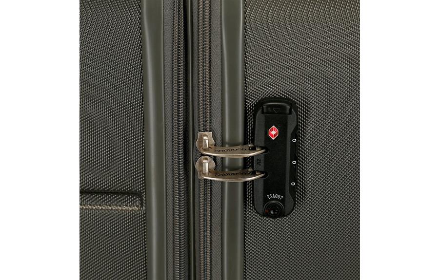 Set dva kofera sa četiri dupla točkića omogućava udobnu, glatku vožnju i pokretljivost bez napora. Zatvaranje bočnom kombinacijom povećava sigurnost prtljaga. Unutrašnjost kofera je organizovana radi preglednijeg rasporeda Vaših stvari.