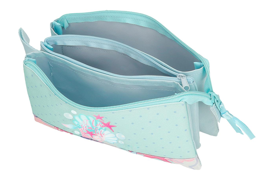 MOVOM I LOVE SEA LIFE prazna pernica sa 3 pregrade donosi savršenu kombinaciju nežnog mint dizajna, veselih morskih motiva i pametne unutrašnje organizacije. Lagana je, izdržljiva i idealna za školu, putovanja ili kućni radni sto. Napravljena je od kvalitetnog poliestera i dizajnirana da traje.