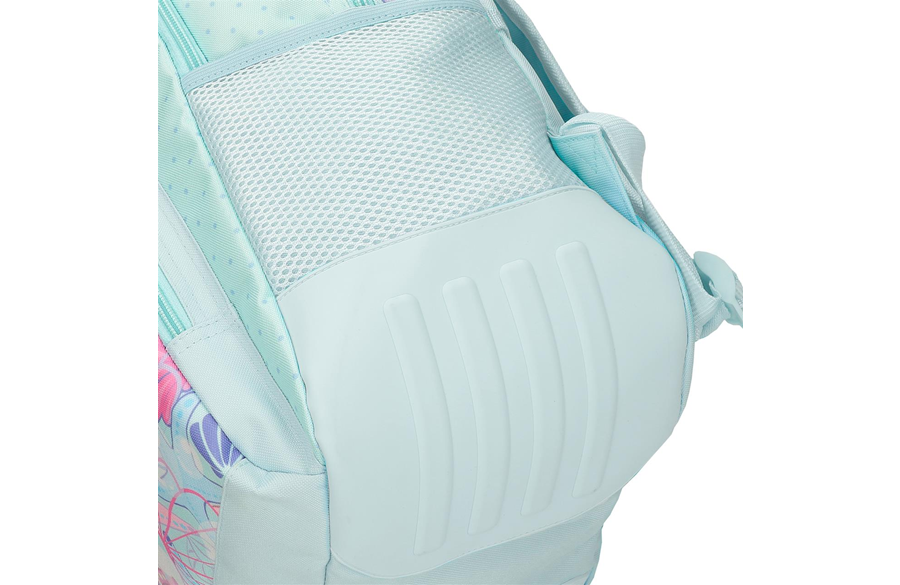 Ranac ima bočna ojačanja koja štite materijal od habanja. Ovaj detalj značajno produžava vek trajanja i čuva formu ranca čak i uz svakodnevno korišćenje. Ilustracije školjki, mehurića i morskih zvezdica donose letnje vibracije i vedar, razigran stil. Mint pastel i pink detalji stvaraju nežan, ali moderan izgled koji svaka mala morska princeza voli. Ranac je vizuelno usklađen sa koferima i neseserima iz SEA LIFE kolekcije.