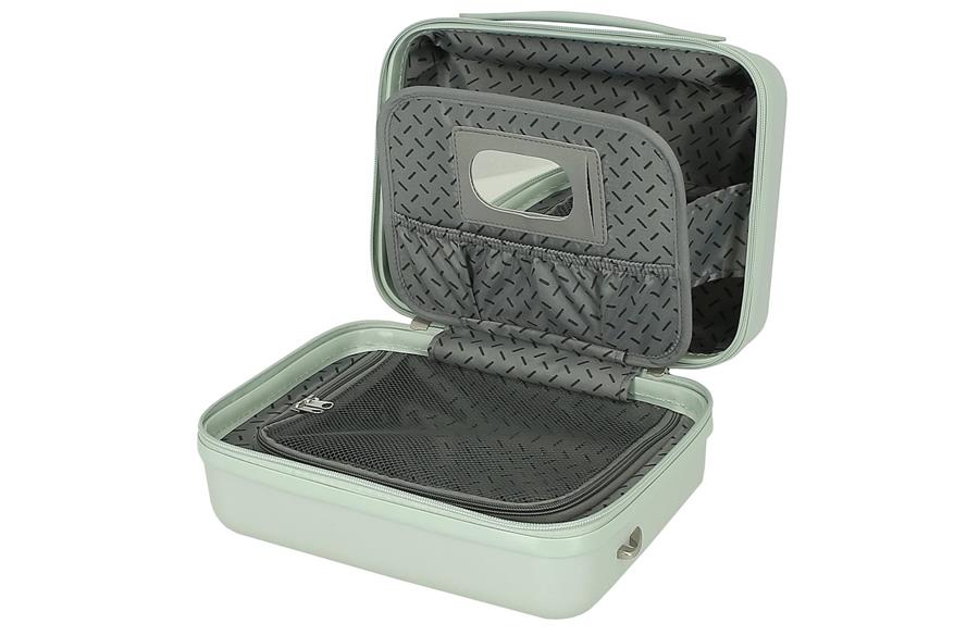 Beauty case sadrži dva odeljka, ogledalo i džep za poboljšanje organizacije. Poseduje traku za prilagođavanje Vaše toaletne torbe za nošenje zakačene za kofer a možete je i nositi na ramenu, zahvaljujući kaišu koga možete podesiti.