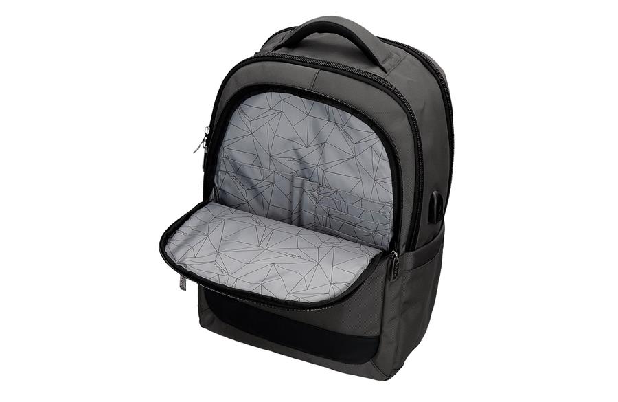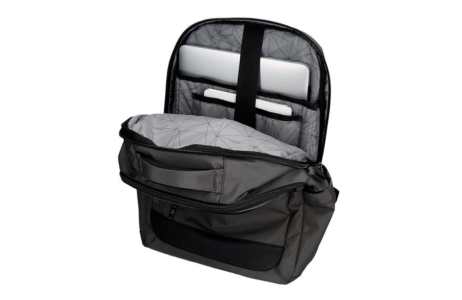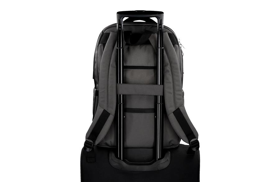 Ranac je sa specifičnim odeljkom za laptop do 13,3″ kao i sa pregradom za tablet i unutrašnjim džepom za nošenje dokumenata. Prednji džep sa unutrašnjim organizatorom za čuvanje 2 olovke, mobilnog telefona i 5 kartica. Ojačana leđa sa širokim i ergonomskim  kaiševima koje se savršeno prilagođavaju leđima kako bi pružile najveću udobnost. Mogućnost prilagođavanja koferu.