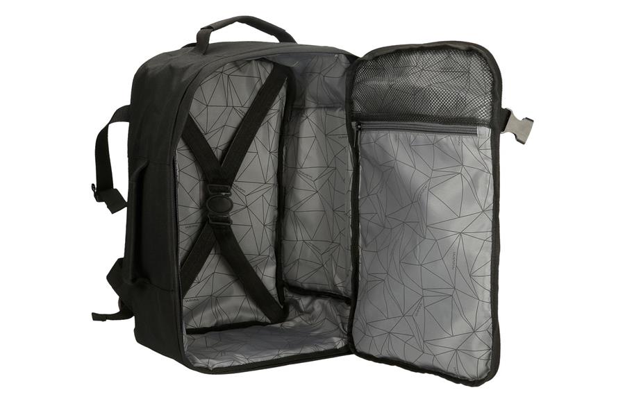Kabinski ranac dimenzija 25 cm x 40 cm x 20 cm, izrađen od poliestera, idealan je kao ručni prtljag za putovanja. Glavni odeljak sadrži dve praktične unutrašnje pregrade – jednu sa rajsferšlusom, a drugu sa elastičnim trakama za bezbedno odlaganje stvari. Prednji odeljak opremljen je džepom i unutrašnjim organizatorom, savršenim za gedžete ili lične stvari. Uz široke, ergonomske i postavljene kaiševe, ranac se savršeno prilagođava leđima, pružajući maksimalnu udobnost. Zadnja traka omogućava lako pričvršćivanje na kofer, olakšavajući nošenje tokom putovanja.