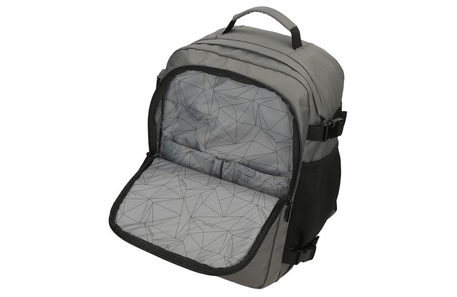 Kabinski ranac dimenzija 28 cm x 40 cm x 20 cm, izrađen od poliestera, idealan je kao ručni prtljag za putovanja. Glavni odeljak sadrži dve praktične unutrašnje pregrade – jednu sa rajsferšlusom, a drugu sa elastičnim trakama za bezbedno odlaganje stvari. Prednji odeljak opremljen je džepom i unutrašnjim organizatorom, savršenim za gedžete ili lične stvari. Uz široke, ergonomske i postavljene kaiševe, ranac se savršeno prilagođava leđima, pružajući maksimalnu udobnost. Zadnja traka omogućava lako pričvršćivanje na kofer, olakšavajući nošenje tokom putovanja.