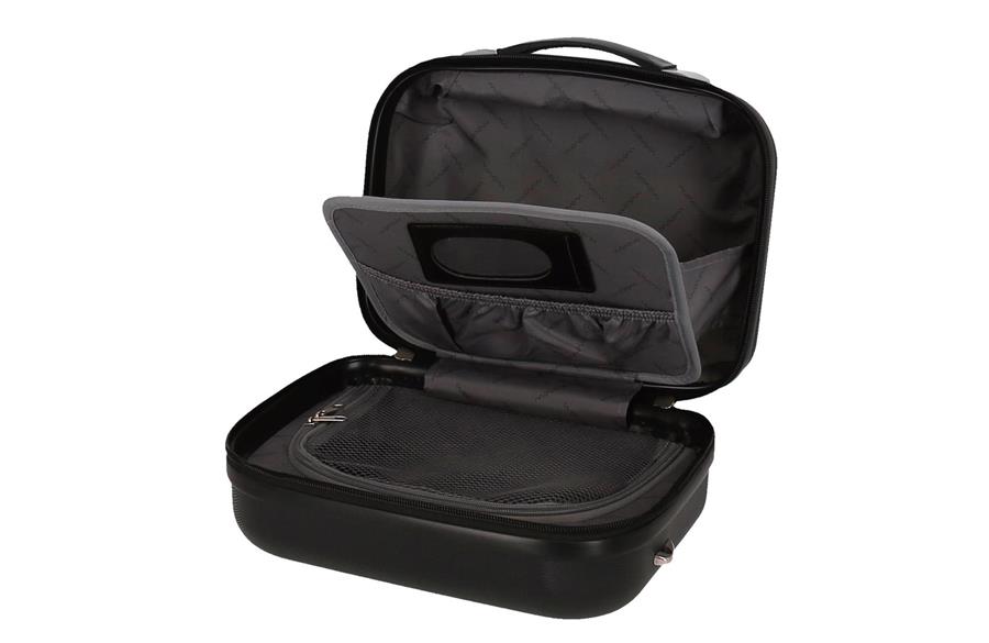 Beauty case sadrži dva odeljka, ogledalo i džep za poboljšanje organizacije. Poseduje traku za prilagođavanje Vaše toaletne torbe za nošenje zakačene za kofer a možete je i nositi na ramenu, zahvaljujući kaišu koga možete podesiti.