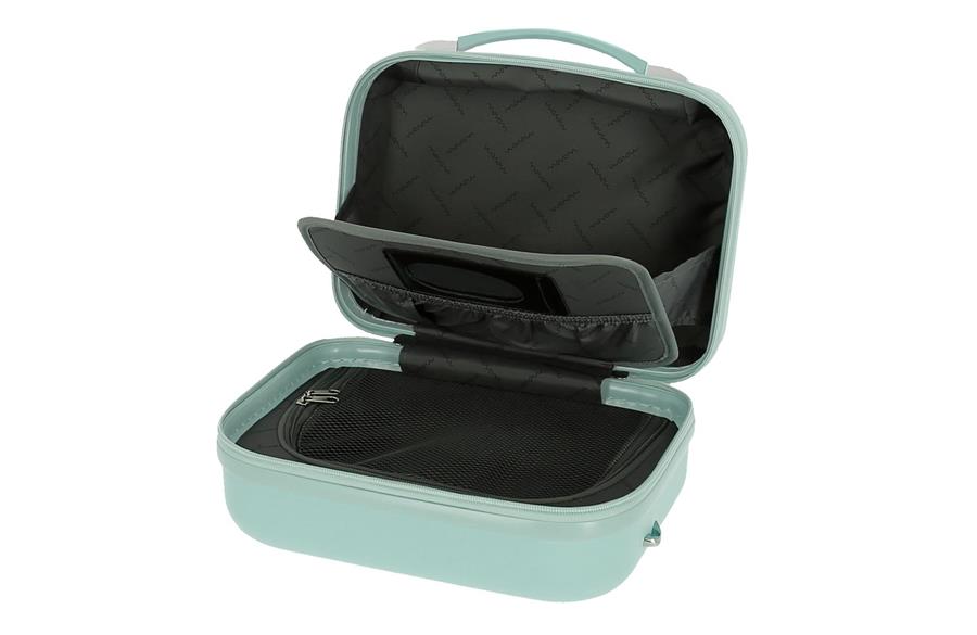 Beauty case sadrži dva odeljka, ogledalo i džep za poboljšanje organizacije. Poseduje traku za prilagođavanje Vaše toaletne torbe za nošenje zakačene za kofer a možete je i nositi na ramenu, zahvaljujući kaišu koga možete podesiti.
