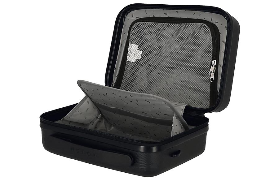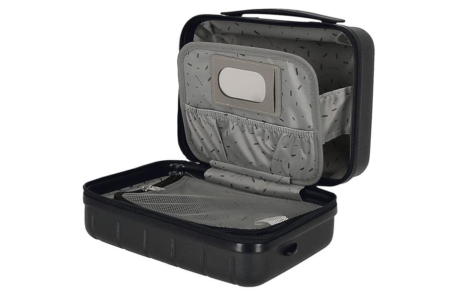Beauty case sadrži dva odeljka, ogledalo i džep za poboljšanje organizacije. Poseduje traku za prilagođavanje Vaše toaletne torbe za nošenje zakačene za kofer a možete je i nositi na ramenu, zahvaljujući kaišu koga možete podesiti.