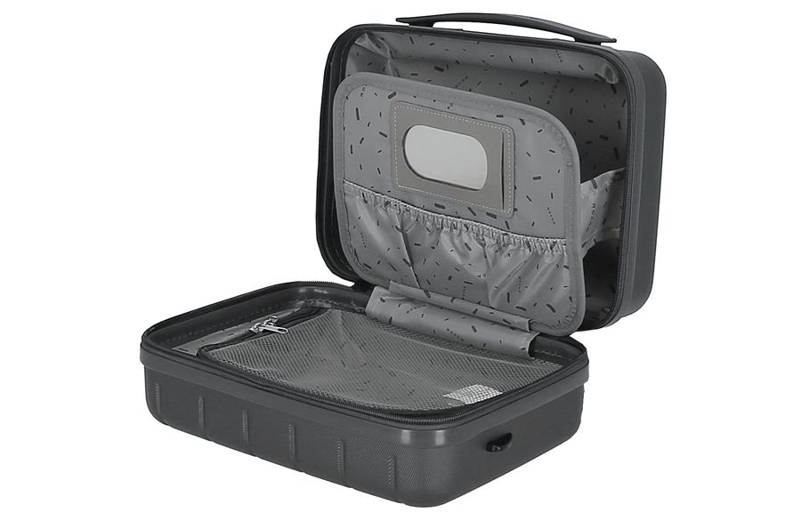 Beauty case sadrži dva odeljka, ogledalo i džep za poboljšanje organizacije. Poseduje traku za prilagođavanje Vaše toaletne torbe za nošenje zakačene za kofer a možete je i nositi na ramenu, zahvaljujući kaišu koga možete podesiti.