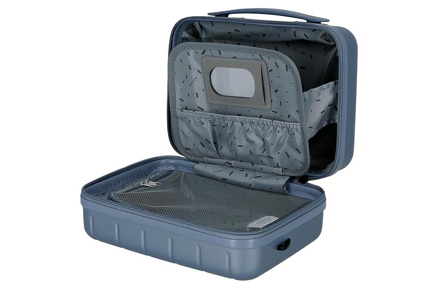 Beauty case sadrži dva odeljka, ogledalo i džep za poboljšanje organizacije. Poseduje traku za prilagođavanje Vaše toaletne torbe za nošenje zakačene za kofer a možete je i nositi na ramenu, zahvaljujući kaišu koga možete podesiti.