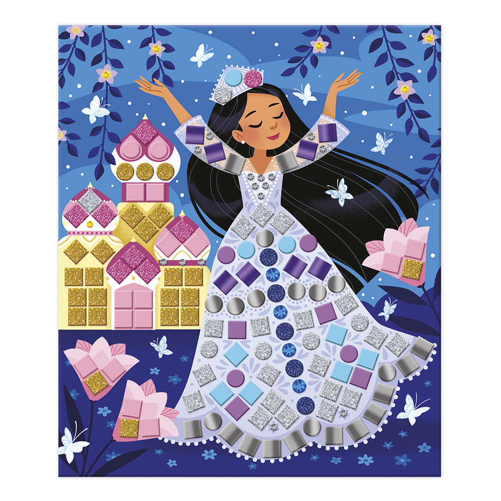 Ove princeze i vile čekaju da im deca pronađu inspirativne odeće i dodatke! U ovom kreativnom kompletu, namenjenom deci uzrasta od 5 i više godina, pronaći ćete 8 slika na temu princeza i vila koje mogu da ukrase mat i blistavim mozaičkim delovima. Delovi su veličine prilagođene starijoj deci i podstiču preciznost i pedantni pristup. Kada se dizajni završe, možete ih okačiti na zidove kako biste ukrasili dečije sobe! Kartice su dimenzija 20,6 x 24,3 cm. Ovaj komplet sadrži: 8 slika, 1100 mat i blistavih mozaičkih delova od pene i 4 lepljive kukice.
