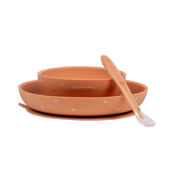 Savršen set za male gurmane i njihove roditelje! Elegantni silikonski set za obroke sadrži tanjir, činiju i kašiku izrađene od mekog, nelomljivog silikona bez BPA. Zahvaljujući vakum postolju, posuđe ostaje stabilno, a podignute ivice sprečavaju prosipanje hrane. Kašika je posebno oblikovana za male ruke i usta, podstičući samostalno hranjenje. Bezbedan za mikrotalasnu (osim kašike) i mašinu za pranje sudova. Moderan dizajn i praktičnost čine ovaj set idealnim izborom za svaki porodični obrok – kod kuće ili u pokretu.