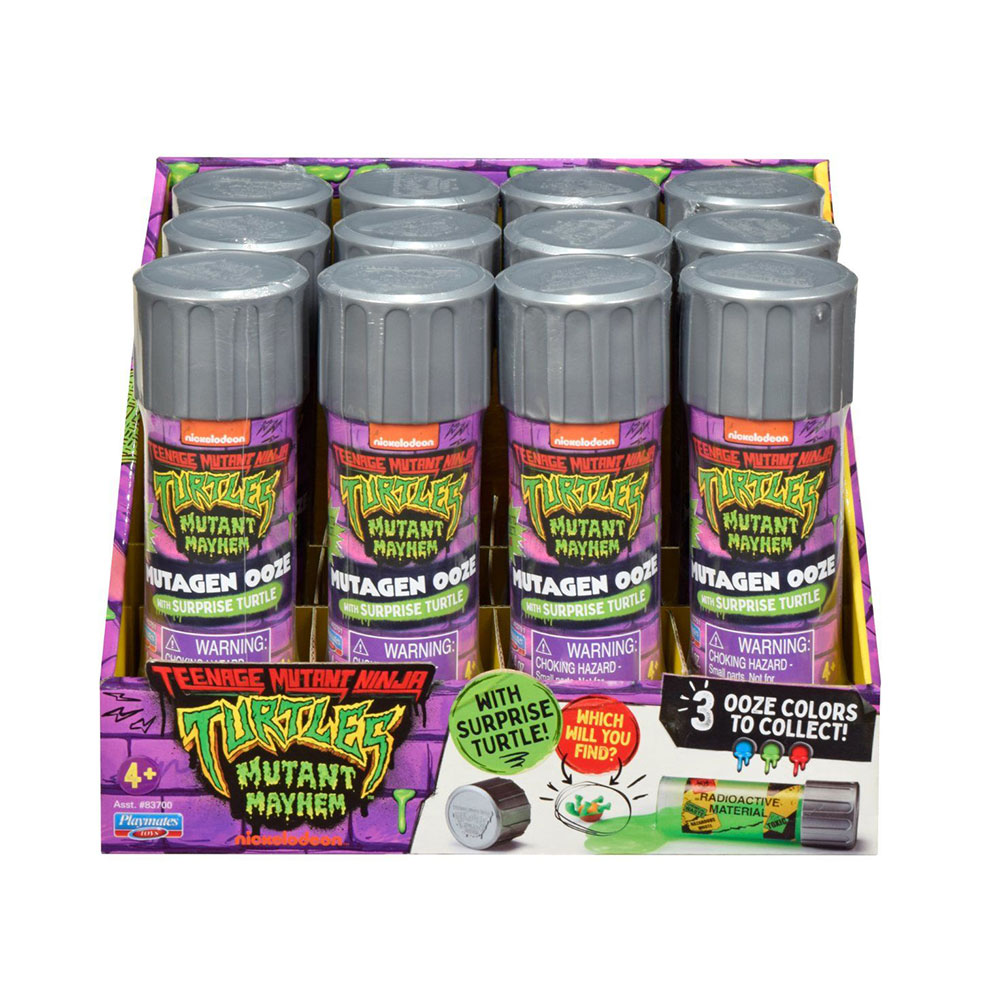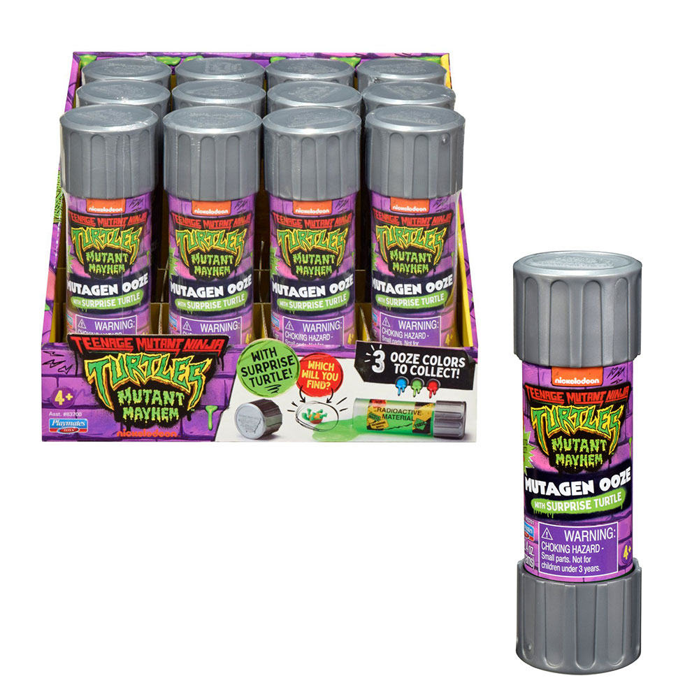 Četiri najpoznatije kornjače, spremne da se bore protiv zlih mutanata, dolaze u pakovanjima iznenađenja! Unutra ćete pronaći sluzavi mutagen, a uz njega – kornjaču u svojoj bebi formi! Koju kornjaču ćete dobiti? Samo jedno je sigurno – prava zabava vas čeka!