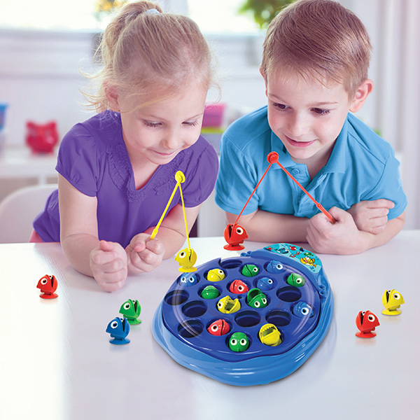 Podstiče kordinaciju oko-ruka, takmičarski duh i spretnost. Igra sadrži rotirajući ribnjak, 4 štapa za pecanje, ribe u raznim bojama i uputstvo. Izaberite štap u svojoj omiljenoj boji i pecanje može da počne. Dimenzije proizvoda: 26×28.3x5cm. Uzrast: 3+