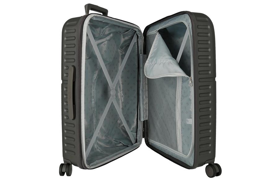 Set dva kofera sa četiri dupla točkića omogućava udobnu, glatku vožnju i pokretljivost bez napora. Zatvaranje bočnom kombinacijom povećava sigurnost prtljaga. Unutrašnjost kofera je organizovana radi preglednijeg rasporeda Vaših stvari.