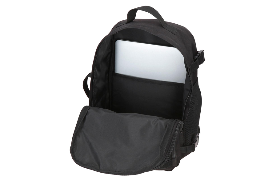 Iako kompaktan, ARIS je iznenađujuće prostran zahvaljujući dva velika glavna odeljka koji omogućavaju odvajanje garderobe, školskog materijala, opreme ili laptopa. Unutra se nalazi posebna postavljena pregrada za laptop koja čuva uređaj tokom vožnje, leta ili svakodnevne upotrebe. Praktični prednji džepovi idealni su za dokumenta, kablove i sitnice koje moraju biti lako dostupne.  Bočni mrežasti džepovi drže flašicu vode ili termos bez klizanja.