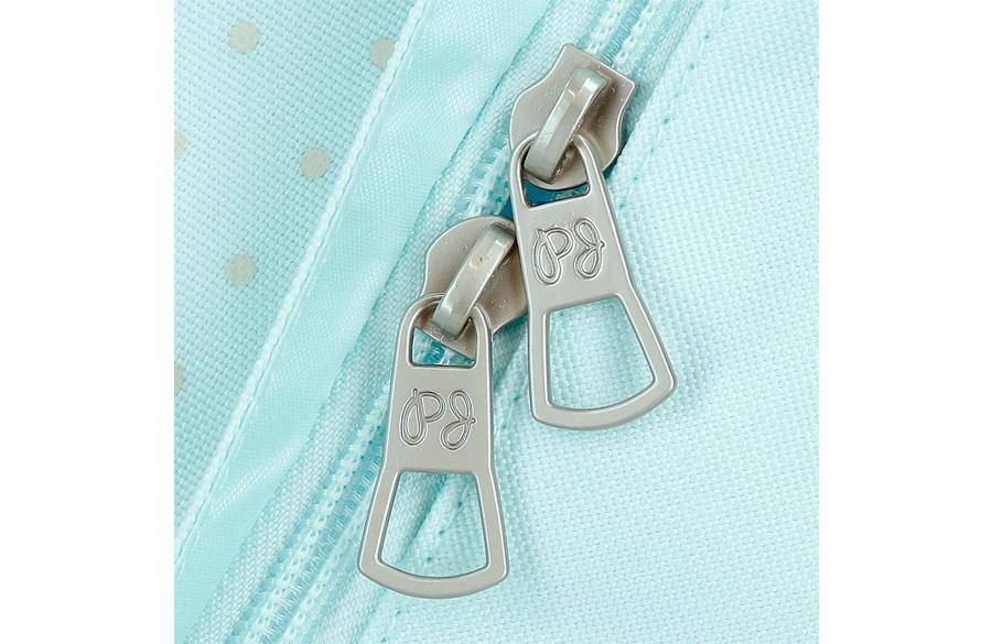 U nežnoj tirkiznoj boji sa dikretnim tačkicama, oduševiće Vas nova kolekcija brenda Pepe Jeans Dalma. Uživajte u modernim i funkcionalnim artiklima koji će odgovarati uz svaku Vašu odevnu kombinaciju bilo da idete u školu ili na putovanje.