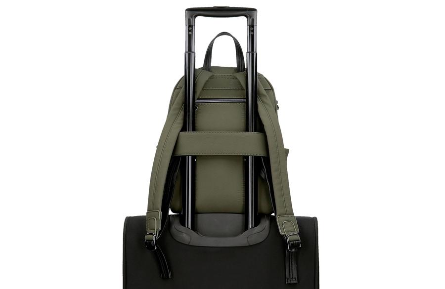 Dimenzije ranca su 25,5 × 35 × 14 cm, sa zapreminom od 12,5 litara – dovoljno za sve što ti je potrebno tokom dana. Unutrašnjost poseduje glavni pregradak velikog kapaciteta i dva unutrašnja džepa. Jedan od njih ima rajsferšlus – savršen za čuvanje ključeva, novčanika ili drugih sitnica. Sa spoljašnje strane nalaze se praktični bočni džepovi, dok ergonomske, postavljene i podesive naramenice obezbeđuju maksimalnu udobnost. Na zadnjoj strani nalazi se traka za pričvršćivanje na kofer – idealno rešenje za putovanja i gradske avanture. Gornja ručka omogućava lako podizanje i nošenje u ruci.