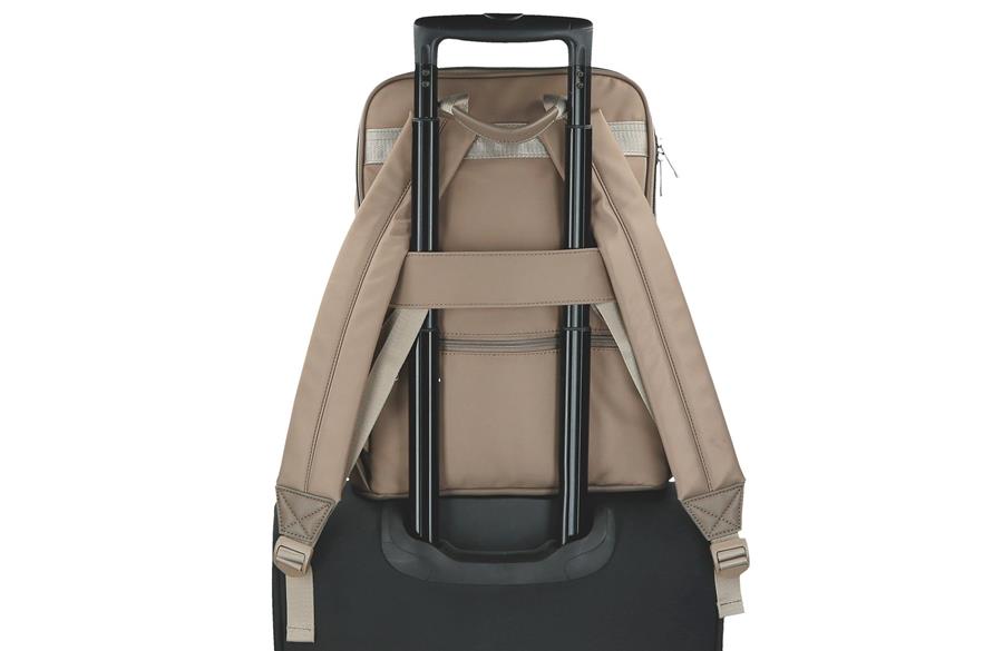 Ranac osmišljen za one koji žele funkcionalnost, sigurnost i udobnost u svakodnevnom ritmu. Izrađen od izdržljivog poliestera sa detaljima od eko kože, kombinuje moderan izgled sa pametno organizovanim prostorom. Poseban odeljak sa zadnje strane omogućava direktan pristup postavljenoj pregradi za laptop i tablet, pružajući dodatnu zaštitu i diskreciju. Prostrani glavni deo nudi dovoljno mesta za knjige, garderobu i druge potrepštine, uz dodatnu postavu koja štiti sadržaj. Široke, ergonomski oblikovane i postavljene naramenice savršeno se prilagođavaju leđima, dok zadnja traka omogućava lako pričvršćivanje na kofer — idealno za putovanja, posao ili dinamične gradske dane.