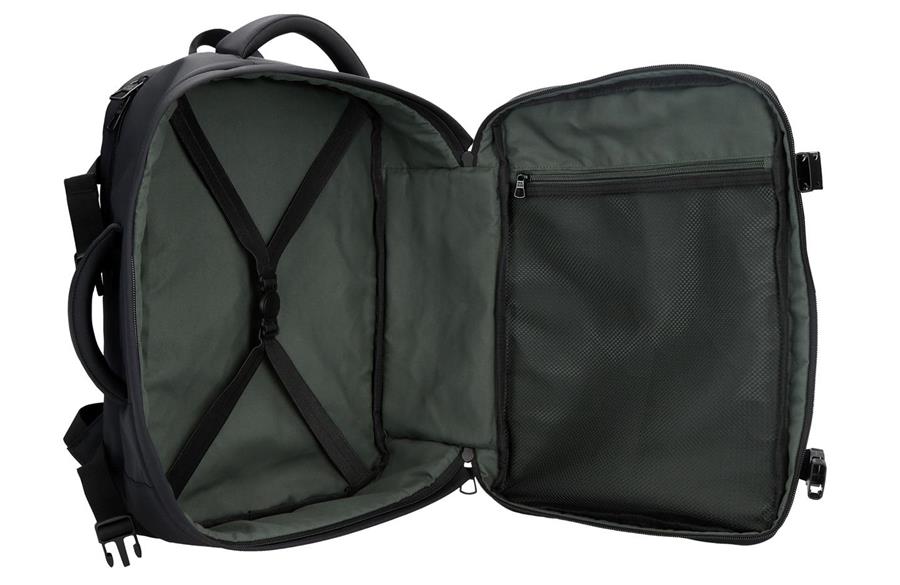 Ranac Sail Up donosi pametnu organizaciju i pouzdanu zaštitu: glavni odeljak sadrži dve pregrade – jednu sa rajsferšlusom i drugu sa elastičnim trakama za sigurno fiksiranje stvari, uz integrisani USB port za punjenje uređaja u pokretu. Poseban zadnji odeljak štiti laptop do 15,6″ i tablet, dok prednji deo s organizatorom drži sitnu tehniku i lične stvari uredno na dohvat ruke. Široke, ergonomske naramenice i traka za kofer obezbeđuju udobnost tokom celog dana i lagodna putovanja.